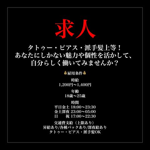 【求人】タトゥー・ピアス・派手髪上等!あなたにしかない魅力や個性を活かして、自分らしく働いてみませんか?✨✨