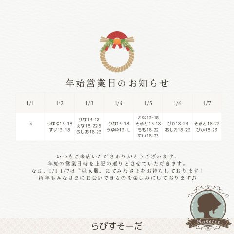年始の営業時間、キャストについては画像をご確認ください!