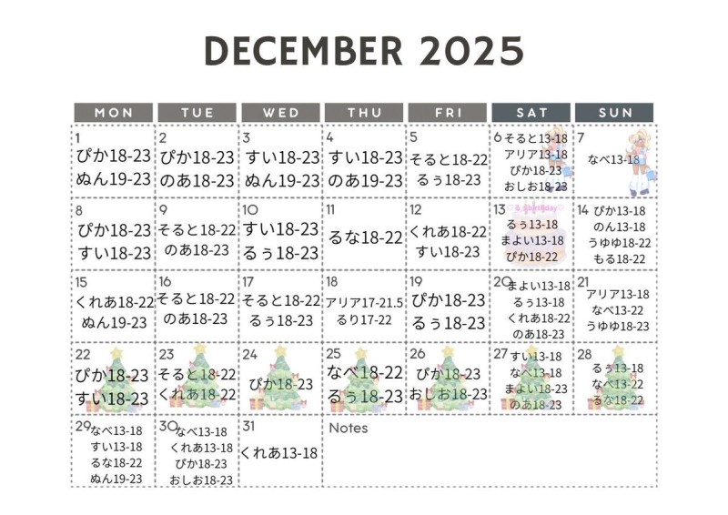 🎄12月シフト🎄
