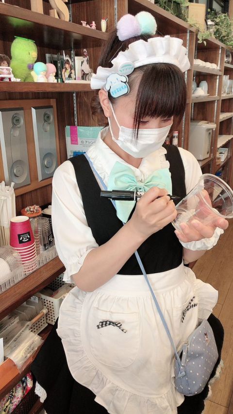 テイクアウト用のカップにはメイドがお絵描きやメッセージをお描きいたしております✨