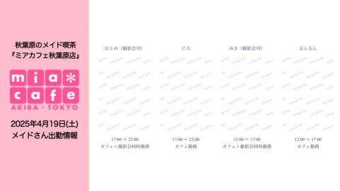 本日4月19日(土)のミアカフェ秋葉原店