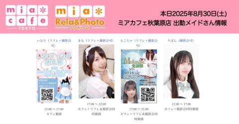 👑本日8月30日(土)のミアカフェ秋葉原店