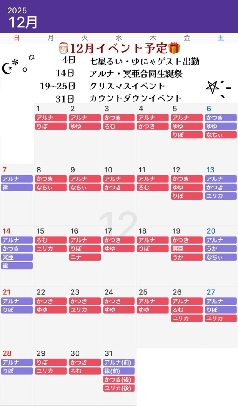 🐈⬛12月 #Bar黒月 お給仕予定表 🌙