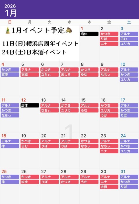 2026幎1æ ãã£ã¹ãã絊ä»äºå®è¡š