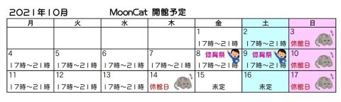 | å¶æ¥æé | å¶æ¥æé å¹³æ¥ãæãæšã20ïŒ00ãæ·±å€2ïŒ00 ããŒãã»ããªã³ã¯ã»ã«ã©ãªã± ã©ã¹ããªãŒããŒïŒ1ïŒ30 鱿«ã»éåã»ç¥åæ¥ã20ïŒ00ãæ·±å€5ïŒ00 ããŒãã»ããªã³ã¯ã»ã«ã©ãªã± ã©ã¹ããªãŒããŒïŒ4ïŒ30 å®äŒæ¥ æ¥ææ¥ â»ãã®ä»ã®èšæåºäŒæ¥ã¯ãtwitterã»HPã«ãŠãæ¡å ããŠãããŸãã ã·ã¹ãã MoonCatäžæŽ²åºã¯ã¿ã€ã ãã£ãŒãžå¶ã§ãã ïŒãäž»äººæ§ ã»æåã®60åãã900å ã»ä»¥é30忝ãã600å ïŒãå¬¢æ§ ããã£ãŒãžæç¡æ ã»ãäžäººæ§ã«ã€ãæåã«ã¯ã³ãªãŒããŒãããã ããŠãããŸãã ãæ³šæãã䌺ãããŠããã®æéå¶ãšãªããŸãã ã»ïŒïŒæ³æªæºã®æ¹ã¯ã22æä»¥éã®ãæ¥åºã¯åºæ¥ãŸããã ã»é転è ã®æ¹ã¯ã飲é ããé æ ®ããã ããŠãããŸãã | ||||||||||||||