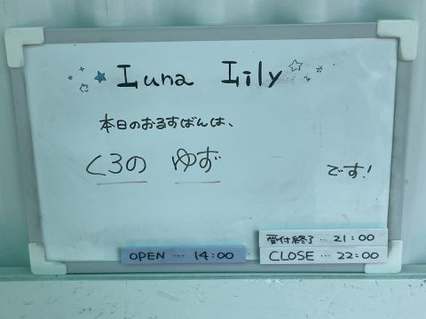 | 営業時間 | 平 日 15:00〜22:00 土日祝 14:00〜22:00 または 13:00~21:00 (21時または20時受付終了) | ||||||||||||||