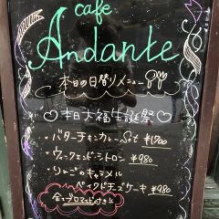 | 営業時間 | 平日15時〜22時。土日祝12時〜22時。不定期で営業時間が変わる場合がございます。詳しくは下記スケジュール表をご確認下さいhttp://andante.jp/ftschedule221/schedule.cgi | ||||||||||||||