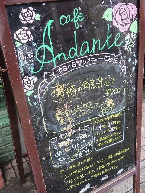 | 営業時間 | 平日15時〜22時。土日祝12時〜22時。不定期で営業時間が変わる場合がございます。詳しくは下記スケジュール表をご確認下さいhttp://andante.jp/ftschedule221/schedule.cgi | ||||||||||||||