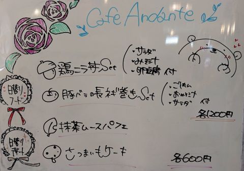 | 営業時間 | 平日15時〜22時。土日祝12時〜22時。不定期で営業時間が変わる場合がございます。詳しくは下記スケジュール表をご確認下さいhttp://andante.jp/ftschedule221/schedule.cgi | ||||||||||||||