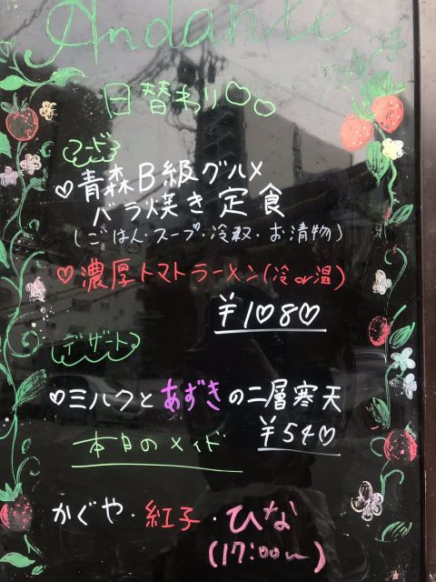 | 営業時間 | 平日15時〜22時。土日祝12時〜22時。不定期で営業時間が変わる場合がございます。詳しくは下記スケジュール表をご確認下さいhttp://andante.jp/ftschedule221/schedule.cgi | ||||||||||||||