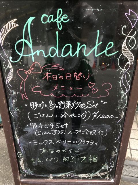 | 営業時間 | 平日15時〜22時。土日祝12時〜22時。不定期で営業時間が変わる場合がございます。詳しくは下記スケジュール表をご確認下さいhttp://andante.jp/ftschedule221/schedule.cgi | ||||||||||||||