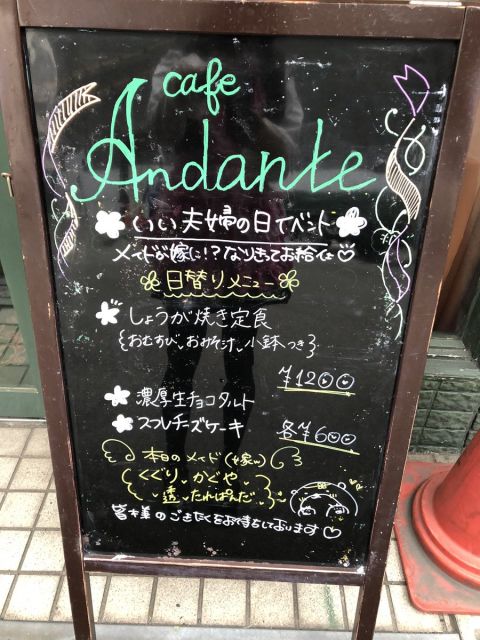 | 営業時間 | 平日15時〜22時。土日祝12時〜22時。不定期で営業時間が変わる場合がございます。詳しくは下記スケジュール表をご確認下さいhttp://andante.jp/ftschedule221/schedule.cgi | ||||||||||||||