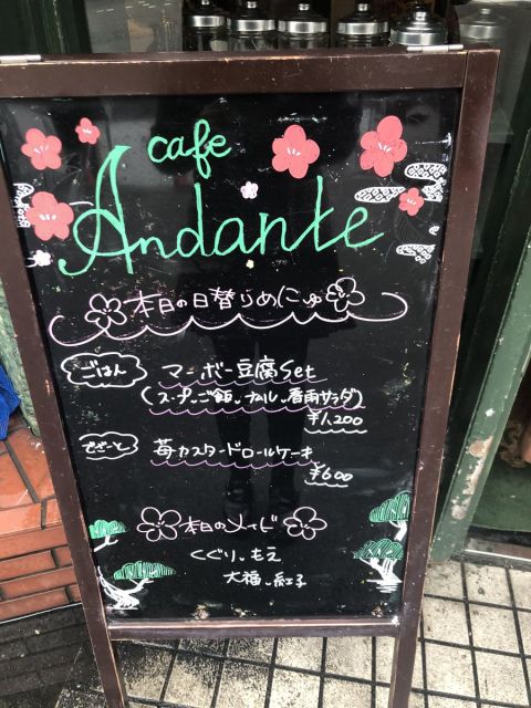 | 営業時間 | 平日15時〜22時。土日祝12時〜22時。不定期で営業時間が変わる場合がございます。詳しくは下記スケジュール表をご確認下さいhttp://andante.jp/ftschedule221/schedule.cgi | ||||||||||||||