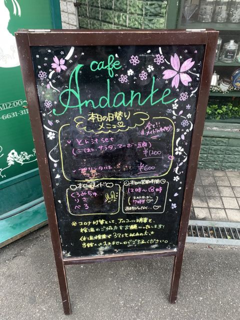 | 営業時間 | 平日15時〜22時。土日祝12時〜22時。不定期で営業時間が変わる場合がございます。詳しくは下記スケジュール表をご確認下さいhttp://andante.jp/ftschedule221/schedule.cgi | ||||||||||||||