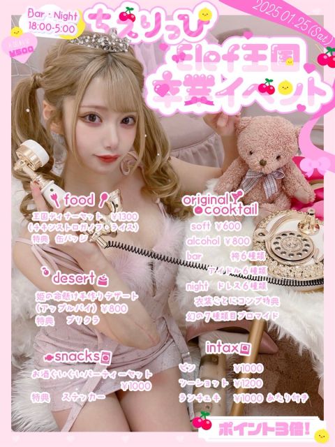 | 営業時間 | バータイム (平日) 18:00〜23:30 ナイトタイム(金・土・祝前) 23:30〜5:00 定休日毎月15日 イベント会場にて主催の場合休業する場合がございます。 | ||||||||||||||