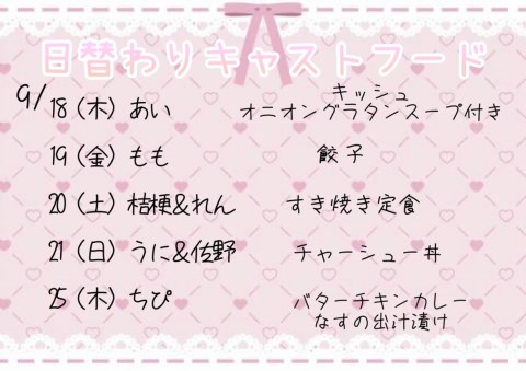 9/25 日替わりキャストフード
