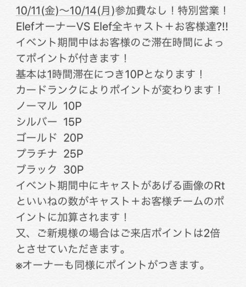 | å¶æ¥æé | ããŒã¿ã€ã (å¹³æ¥) 18:00ã23:30 ãã€ãã¿ã€ã (éã»åã»ç¥å) 23:30ã5:00 å®äŒæ¥æ¯æ15æ¥ ã€ãã³ãäŒå Žã«ãŠäž»å¬ã®å ŽåäŒæ¥ããå ŽåãããããŸãã | ||||||||||||||