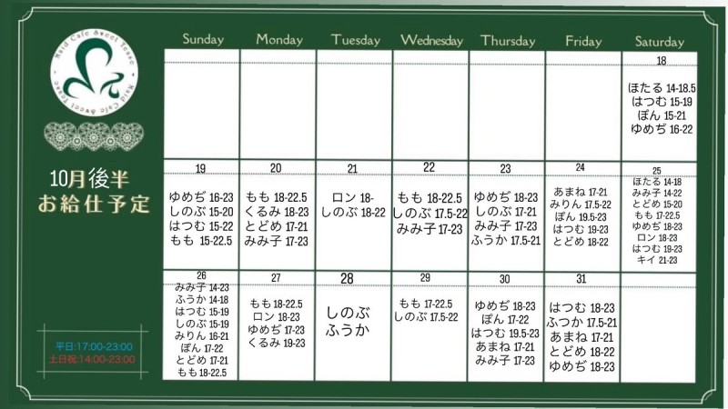 10月後半お給仕予定🎃🦇☠️
