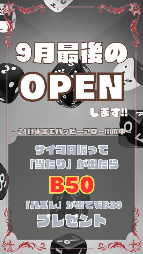 | 営業時間 | 営業時間:20:30から翌3:00 | ||||||||||||||