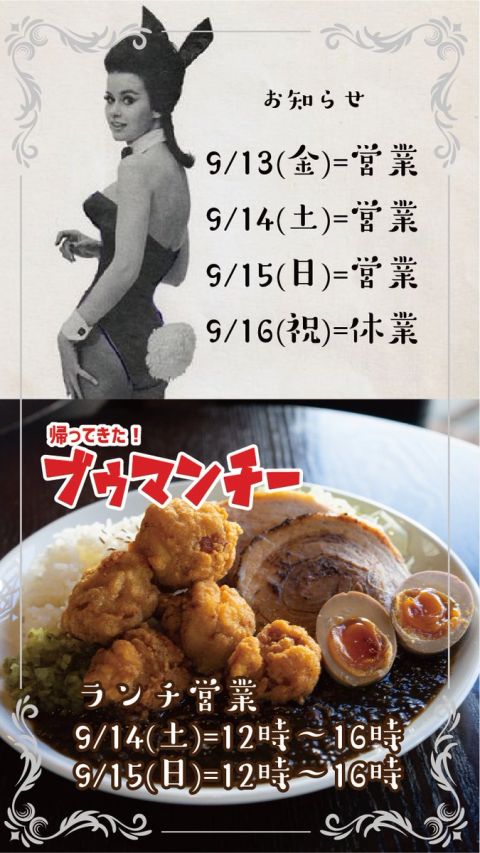 | 営業時間 | 営業時間:20:30から翌3:00 | ||||||||||||||