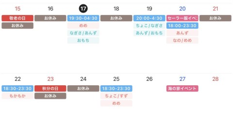 ■9/20(土) …セーラー服イベント🎀