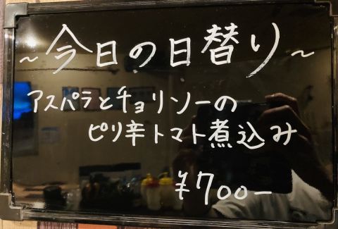 アスパラとチョリソーのピリ辛トマト煮込み🍅