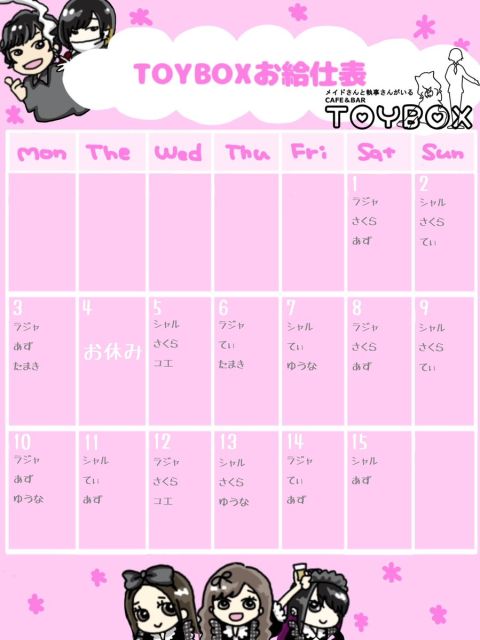 TOYBOX8月前半スタッフシフト𖤐˒˒