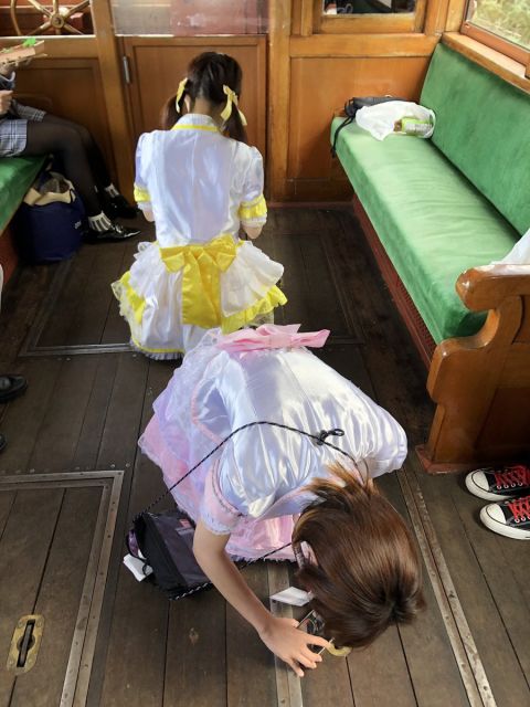 貸切ならではの走行中の台車を撮影するアイドル軌条あさまと高架線こまち。真剣。