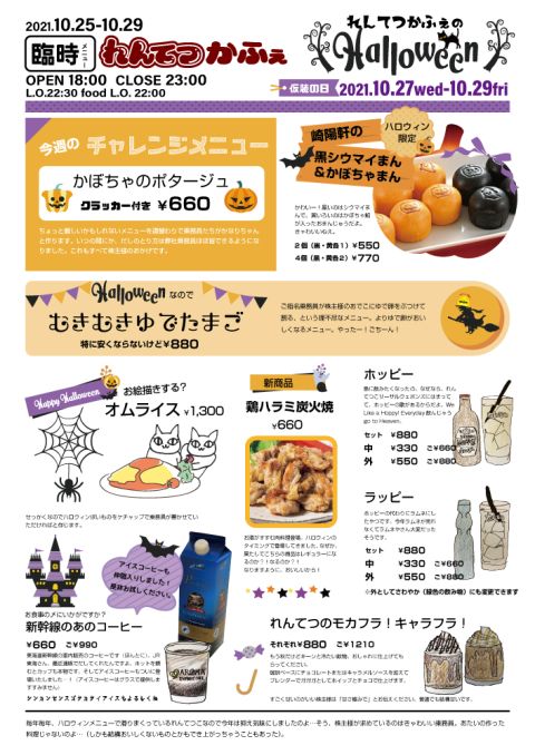 今週はハロウィンデーもあるし、ハロウィンなメニューをご堪能下さいっ!!