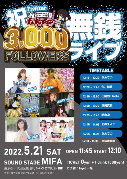 5/21(土)『れんてつ公式フォロワー3000人突破記念無銭ライブ』