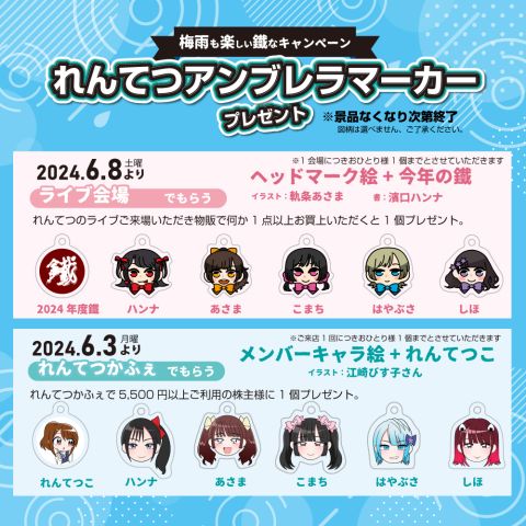 れんてつライブ物販でのお買い物でもアンブレラマーカーをプレゼント中♪