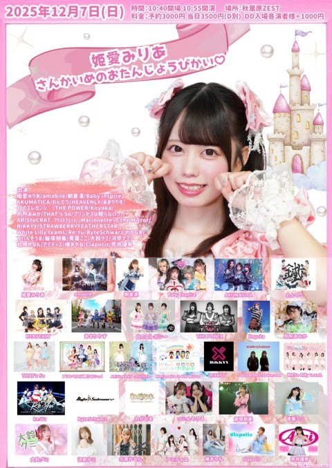 12/7(日)姫愛みりあさんかいめのおたんじょうびかい♡