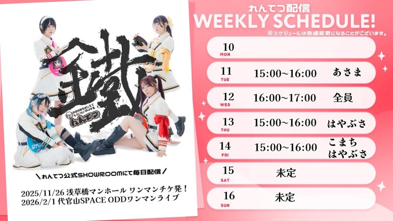 🚃 れんてつ配信スケジュール 🚃