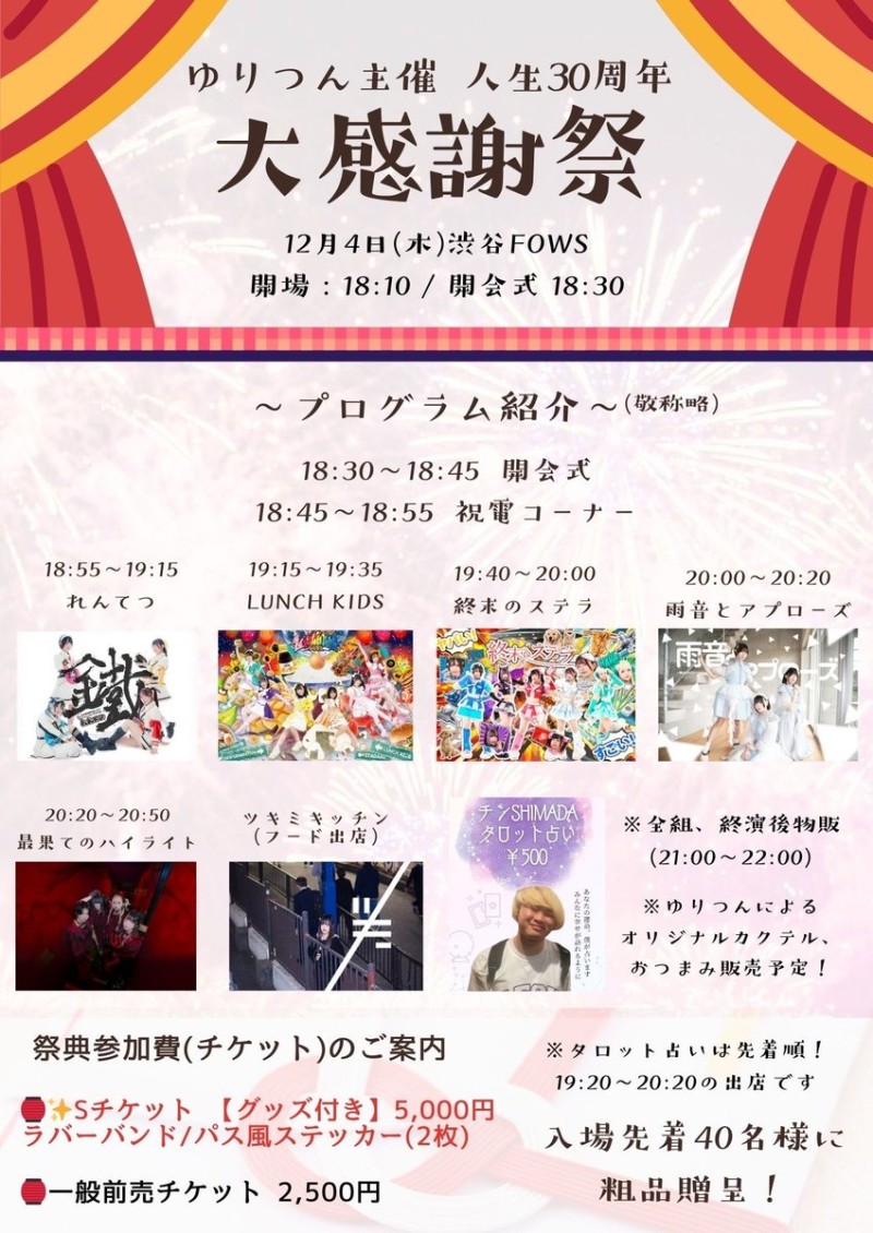 12/4(木)ゆりつん主催 人生30周年大感謝祭