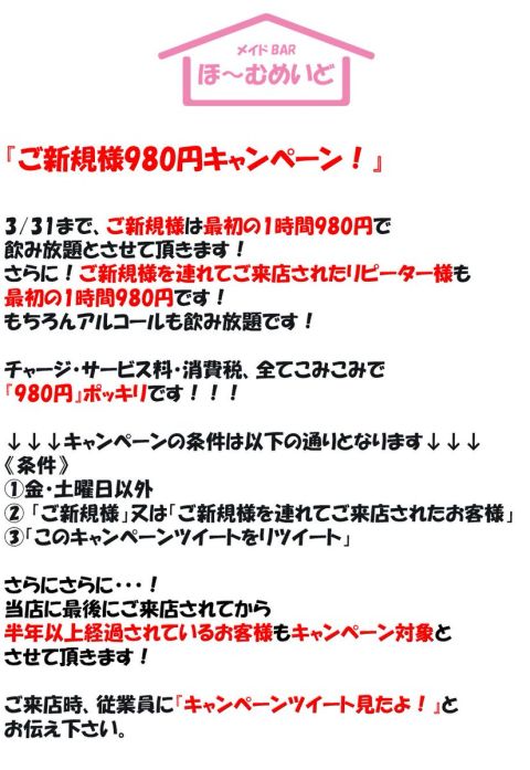 本日Twitterをみた方を対象のお得なキャンペーンやっております⭐