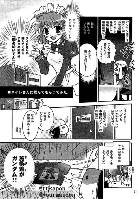 ユアメイデンってどんな所?整体って何をするの?そんな方はこちらのるかぽん @rukapon さんのマンガをご覧下さい!疑問の次は肩や腰をスッキリしに行きましょう^^