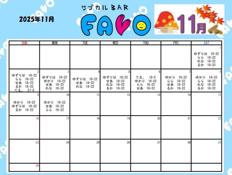 🎀11月のシフト更新🎀