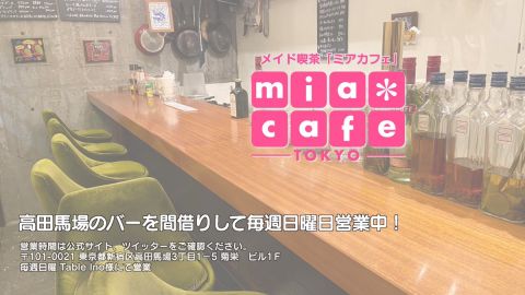| å¶æ¥æé | âãã¢ã«ãã§æ±äº¬åºïŒã¡ã€ãã«ãã§ïŒhttp://www.mia-cafe.com/ãâ â¡å¹³æ¥ãæïœéãïŒïŒïŒïŒïŒïœïŒïŒïŒïŒïŒ â¡åæã»æ¥æã»ç¥æ¥ãïŒïŒïŒïŒïŒïœïŒïŒïŒïŒïŒ â å®äŒæ¥ããªãïŒ2019幎1æããå®äŒæ¥å»æ¢ïŒ â¡ã©ã¹ããªãŒããŒãéåºã®ïŒïŒåå ãïŒïŒïŒïŒïŒéåºã®å ŽåâïŒïŒïŒïŒïŒã©ã¹ããªãŒããŒ å¶æ¥æ¥ãåºå€ç¶æ³ã«ã€ããŠã¯ãã¡ãã http://pandaland.cutegirl.jp/mif/c_cms_csv/sch_top.php âãã¢ãªã©ïŒãã©ãæ±äº¬åºïŒæ®åœ±äŒïŒãªãã¬ïŒhttp://www.mif-lr.com/ãâ â¡å šæ¥ãïŒïŒïŒïŒïŒãïŒïŒïŒïŒïŒãã§ãããªã©ã¯ãŒãŒã·ã§ã³åºå€ã¹ã¿ãããããæé垯ã®ã¿å¶æ¥ã§ãã â å®äŒæ¥ã¯äžå®äŒïŒåºå€ã¹ã¿ãããããæé垯ã®å¶æ¥ïŒ â¡æçµåä»ãéåºã®ïŒïŒåå ãïŒïŒïŒïŒïŒéåºã®å ŽåâïŒïŒïŒïŒïŒïŒïŒïŒïŒïŒïŒè¿ã«æœè¡æéãçµããã³ãŒã¹ïŒ â»é«æ ¡çäžå¯ âæ·±å€å¶æ¥ã«ã€ããŠã¯ãå ¬åŒãµã€ãå³äžã® http://market.chu.jp/schedule1/sche37.cgi ãã¢ã°ã«ãŒãç·åã¹ã±ãžã¥ãŒã«ïŒïŒ°ïŒ£ã»ã¹ããïŒ http://market.chu.jp/schedule1/sche37.cgi?dm=1 ãã¢ã°ã«ãŒãç·åã¹ã±ãžã¥ãŒã«ïŒã¬ã©æºåž¯ïŒ ãã芧ãã ãããåç¥æ¥ã®ã¿å¶æ¥ãšãªããŸããåç¥æ¥ä»¥å€ã¯æ·±å€å¶æ¥ããããŠãããŸããã æ·±å€å¶æ¥å¯Ÿè±¡æ¥ãïŒïŒïŒïŒïŒãç¿æïŒïŒïŒïŒïŒïŒ¬ïŒïŒ¯ïŒïŒïŒïŒïŒïŒ | ||||||||||||||