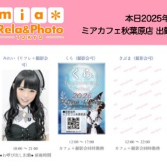 | å¶æ¥æé | âãã¢ã«ãã§æ±äº¬åºïŒã¡ã€ãã«ãã§ïŒhttp://www.mia-cafe.com/ãâ â¡å¹³æ¥ãæïœéãïŒïŒïŒïŒïŒïœïŒïŒïŒïŒïŒ â¡åæã»æ¥æã»ç¥æ¥ãïŒïŒïŒïŒïŒïœïŒïŒïŒïŒïŒ â å®äŒæ¥ããªãïŒ2019幎1æããå®äŒæ¥å»æ¢ïŒ â¡ã©ã¹ããªãŒããŒãéåºã®ïŒïŒåå ãïŒïŒïŒïŒïŒéåºã®å ŽåâïŒïŒïŒïŒïŒã©ã¹ããªãŒããŒ å¶æ¥æ¥ãåºå€ç¶æ³ã«ã€ããŠã¯ãã¡ãã http://pandaland.cutegirl.jp/mif/c_cms_csv/sch_top.php âãã¢ãªã©ïŒãã©ãæ±äº¬åºïŒæ®åœ±äŒïŒãªãã¬ïŒhttp://www.mif-lr.com/ãâ â¡å šæ¥ãïŒïŒïŒïŒïŒãïŒïŒïŒïŒïŒãã§ãããªã©ã¯ãŒãŒã·ã§ã³åºå€ã¹ã¿ãããããæé垯ã®ã¿å¶æ¥ã§ãã â å®äŒæ¥ã¯äžå®äŒïŒåºå€ã¹ã¿ãããããæé垯ã®å¶æ¥ïŒ â¡æçµåä»ãéåºã®ïŒïŒåå ãïŒïŒïŒïŒïŒéåºã®å ŽåâïŒïŒïŒïŒïŒïŒïŒïŒïŒïŒïŒè¿ã«æœè¡æéãçµããã³ãŒã¹ïŒ â»é«æ ¡çäžå¯ âæ·±å€å¶æ¥ã«ã€ããŠã¯ãå ¬åŒãµã€ãå³äžã® http://market.chu.jp/schedule1/sche37.cgi ãã¢ã°ã«ãŒãç·åã¹ã±ãžã¥ãŒã«ïŒïŒ°ïŒ£ã»ã¹ããïŒ http://market.chu.jp/schedule1/sche37.cgi?dm=1 ãã¢ã°ã«ãŒãç·åã¹ã±ãžã¥ãŒã«ïŒã¬ã©æºåž¯ïŒ ãã芧ãã ãããåç¥æ¥ã®ã¿å¶æ¥ãšãªããŸããåç¥æ¥ä»¥å€ã¯æ·±å€å¶æ¥ããããŠãããŸããã æ·±å€å¶æ¥å¯Ÿè±¡æ¥ãïŒïŒïŒïŒïŒãç¿æïŒïŒïŒïŒïŒïŒ¬ïŒïŒ¯ïŒïŒïŒïŒïŒïŒ | ||||||||||||||