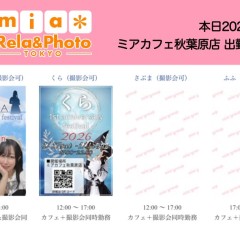 | å¶æ¥æé | âãã¢ã«ãã§æ±äº¬åºïŒã¡ã€ãã«ãã§ïŒhttp://www.mia-cafe.com/ãâ â¡å¹³æ¥ãæïœéãïŒïŒïŒïŒïŒïœïŒïŒïŒïŒïŒ â¡åæã»æ¥æã»ç¥æ¥ãïŒïŒïŒïŒïŒïœïŒïŒïŒïŒïŒ â å®äŒæ¥ããªãïŒ2019幎1æããå®äŒæ¥å»æ¢ïŒ â¡ã©ã¹ããªãŒããŒãéåºã®ïŒïŒåå ãïŒïŒïŒïŒïŒéåºã®å ŽåâïŒïŒïŒïŒïŒã©ã¹ããªãŒããŒ å¶æ¥æ¥ãåºå€ç¶æ³ã«ã€ããŠã¯ãã¡ãã http://pandaland.cutegirl.jp/mif/c_cms_csv/sch_top.php âãã¢ãªã©ïŒãã©ãæ±äº¬åºïŒæ®åœ±äŒïŒãªãã¬ïŒhttp://www.mif-lr.com/ãâ â¡å šæ¥ãïŒïŒïŒïŒïŒãïŒïŒïŒïŒïŒãã§ãããªã©ã¯ãŒãŒã·ã§ã³åºå€ã¹ã¿ãããããæé垯ã®ã¿å¶æ¥ã§ãã â å®äŒæ¥ã¯äžå®äŒïŒåºå€ã¹ã¿ãããããæé垯ã®å¶æ¥ïŒ â¡æçµåä»ãéåºã®ïŒïŒåå ãïŒïŒïŒïŒïŒéåºã®å ŽåâïŒïŒïŒïŒïŒïŒïŒïŒïŒïŒïŒè¿ã«æœè¡æéãçµããã³ãŒã¹ïŒ â»é«æ ¡çäžå¯ âæ·±å€å¶æ¥ã«ã€ããŠã¯ãå ¬åŒãµã€ãå³äžã® http://market.chu.jp/schedule1/sche37.cgi ãã¢ã°ã«ãŒãç·åã¹ã±ãžã¥ãŒã«ïŒïŒ°ïŒ£ã»ã¹ããïŒ http://market.chu.jp/schedule1/sche37.cgi?dm=1 ãã¢ã°ã«ãŒãç·åã¹ã±ãžã¥ãŒã«ïŒã¬ã©æºåž¯ïŒ ãã芧ãã ãããåç¥æ¥ã®ã¿å¶æ¥ãšãªããŸããåç¥æ¥ä»¥å€ã¯æ·±å€å¶æ¥ããããŠãããŸããã æ·±å€å¶æ¥å¯Ÿè±¡æ¥ãïŒïŒïŒïŒïŒãç¿æïŒïŒïŒïŒïŒïŒ¬ïŒïŒ¯ïŒïŒïŒïŒïŒïŒ | ||||||||||||||