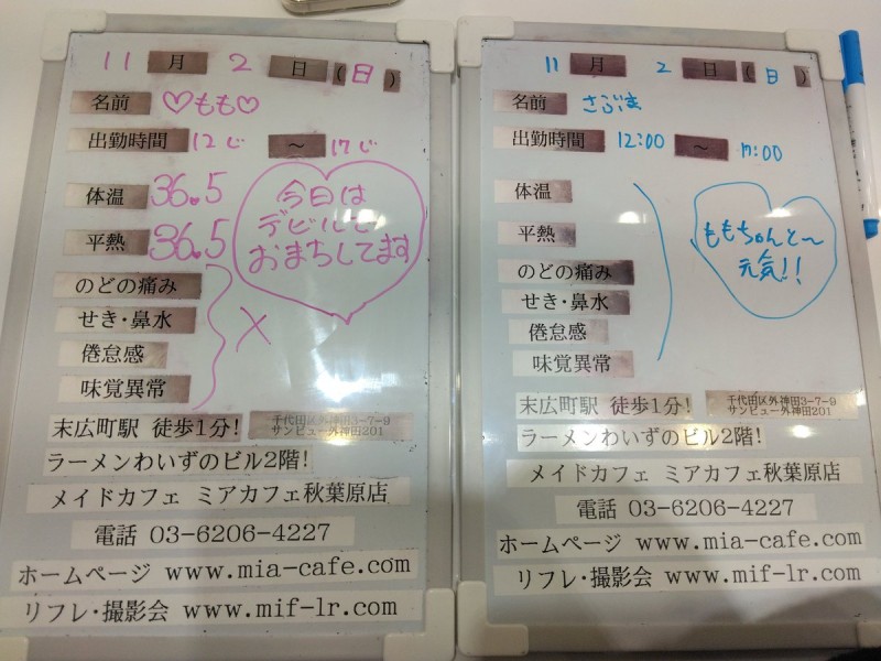 | å¶æ¥æé | âãã¢ã«ãã§æ±äº¬åºïŒã¡ã€ãã«ãã§ïŒhttp://www.mia-cafe.com/ãâ â¡å¹³æ¥ãæïœéãïŒïŒïŒïŒïŒïœïŒïŒïŒïŒïŒ â¡åæã»æ¥æã»ç¥æ¥ãïŒïŒïŒïŒïŒïœïŒïŒïŒïŒïŒ â å®äŒæ¥ããªãïŒ2019幎1æããå®äŒæ¥å»æ¢ïŒ â¡ã©ã¹ããªãŒããŒãéåºã®ïŒïŒåå ãïŒïŒïŒïŒïŒéåºã®å ŽåâïŒïŒïŒïŒïŒã©ã¹ããªãŒããŒ å¶æ¥æ¥ãåºå€ç¶æ³ã«ã€ããŠã¯ãã¡ãã http://pandaland.cutegirl.jp/mif/c_cms_csv/sch_top.php âãã¢ãªã©ïŒãã©ãæ±äº¬åºïŒæ®åœ±äŒïŒãªãã¬ïŒhttp://www.mif-lr.com/ãâ â¡å šæ¥ãïŒïŒïŒïŒïŒãïŒïŒïŒïŒïŒãã§ãããªã©ã¯ãŒãŒã·ã§ã³åºå€ã¹ã¿ãããããæé垯ã®ã¿å¶æ¥ã§ãã â å®äŒæ¥ã¯äžå®äŒïŒåºå€ã¹ã¿ãããããæé垯ã®å¶æ¥ïŒ â¡æçµåä»ãéåºã®ïŒïŒåå ãïŒïŒïŒïŒïŒéåºã®å ŽåâïŒïŒïŒïŒïŒïŒïŒïŒïŒïŒïŒè¿ã«æœè¡æéãçµããã³ãŒã¹ïŒ â»é«æ ¡çäžå¯ âæ·±å€å¶æ¥ã«ã€ããŠã¯ãå ¬åŒãµã€ãå³äžã® http://market.chu.jp/schedule1/sche37.cgi ãã¢ã°ã«ãŒãç·åã¹ã±ãžã¥ãŒã«ïŒïŒ°ïŒ£ã»ã¹ããïŒ http://market.chu.jp/schedule1/sche37.cgi?dm=1 ãã¢ã°ã«ãŒãç·åã¹ã±ãžã¥ãŒã«ïŒã¬ã©æºåž¯ïŒ ãã芧ãã ãããåç¥æ¥ã®ã¿å¶æ¥ãšãªããŸããåç¥æ¥ä»¥å€ã¯æ·±å€å¶æ¥ããããŠãããŸããã æ·±å€å¶æ¥å¯Ÿè±¡æ¥ãïŒïŒïŒïŒïŒãç¿æïŒïŒïŒïŒïŒïŒ¬ïŒïŒ¯ïŒïŒïŒïŒïŒïŒ | ||||||||||||||