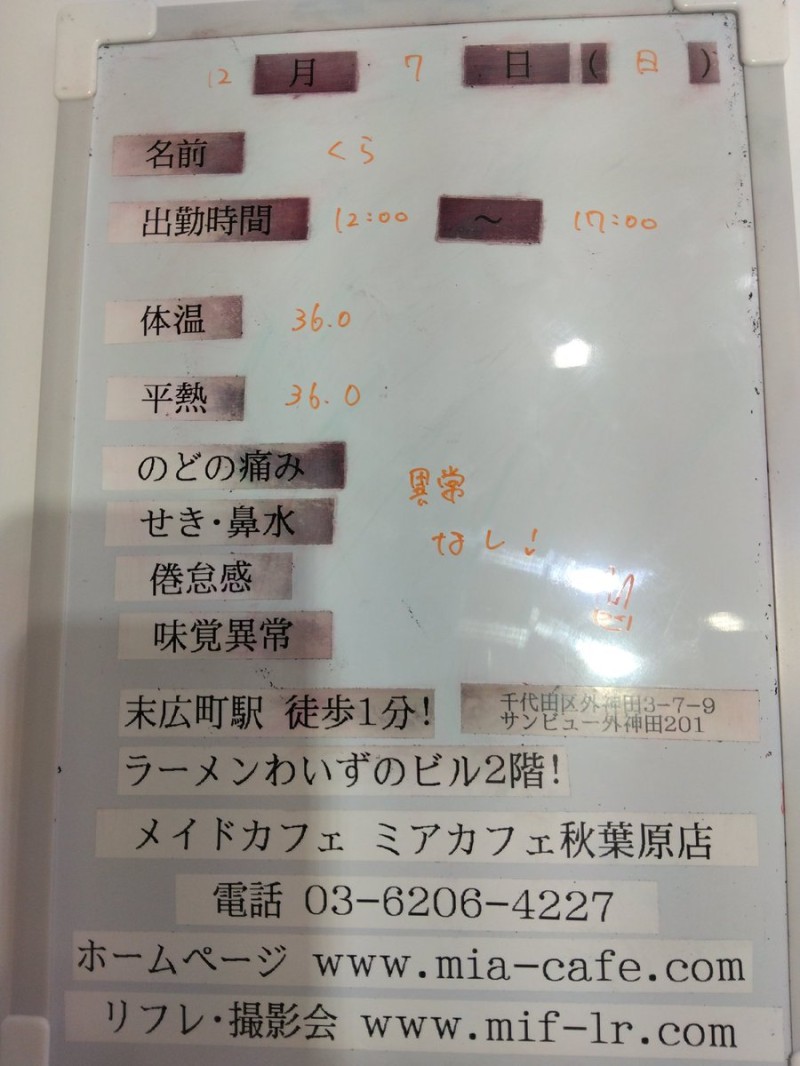 | å¶æ¥æé | âãã¢ã«ãã§æ±äº¬åºïŒã¡ã€ãã«ãã§ïŒhttp://www.mia-cafe.com/ãâ â¡å¹³æ¥ãæïœéãïŒïŒïŒïŒïŒïœïŒïŒïŒïŒïŒ â¡åæã»æ¥æã»ç¥æ¥ãïŒïŒïŒïŒïŒïœïŒïŒïŒïŒïŒ â å®äŒæ¥ããªãïŒ2019幎1æããå®äŒæ¥å»æ¢ïŒ â¡ã©ã¹ããªãŒããŒãéåºã®ïŒïŒåå ãïŒïŒïŒïŒïŒéåºã®å ŽåâïŒïŒïŒïŒïŒã©ã¹ããªãŒããŒ å¶æ¥æ¥ãåºå€ç¶æ³ã«ã€ããŠã¯ãã¡ãã http://pandaland.cutegirl.jp/mif/c_cms_csv/sch_top.php âãã¢ãªã©ïŒãã©ãæ±äº¬åºïŒæ®åœ±äŒïŒãªãã¬ïŒhttp://www.mif-lr.com/ãâ â¡å šæ¥ãïŒïŒïŒïŒïŒãïŒïŒïŒïŒïŒãã§ãããªã©ã¯ãŒãŒã·ã§ã³åºå€ã¹ã¿ãããããæé垯ã®ã¿å¶æ¥ã§ãã â å®äŒæ¥ã¯äžå®äŒïŒåºå€ã¹ã¿ãããããæé垯ã®å¶æ¥ïŒ â¡æçµåä»ãéåºã®ïŒïŒåå ãïŒïŒïŒïŒïŒéåºã®å ŽåâïŒïŒïŒïŒïŒïŒïŒïŒïŒïŒïŒè¿ã«æœè¡æéãçµããã³ãŒã¹ïŒ â»é«æ ¡çäžå¯ âæ·±å€å¶æ¥ã«ã€ããŠã¯ãå ¬åŒãµã€ãå³äžã® http://market.chu.jp/schedule1/sche37.cgi ãã¢ã°ã«ãŒãç·åã¹ã±ãžã¥ãŒã«ïŒïŒ°ïŒ£ã»ã¹ããïŒ http://market.chu.jp/schedule1/sche37.cgi?dm=1 ãã¢ã°ã«ãŒãç·åã¹ã±ãžã¥ãŒã«ïŒã¬ã©æºåž¯ïŒ ãã芧ãã ãããåç¥æ¥ã®ã¿å¶æ¥ãšãªããŸããåç¥æ¥ä»¥å€ã¯æ·±å€å¶æ¥ããããŠãããŸããã æ·±å€å¶æ¥å¯Ÿè±¡æ¥ãïŒïŒïŒïŒïŒãç¿æïŒïŒïŒïŒïŒïŒ¬ïŒïŒ¯ïŒïŒïŒïŒïŒïŒ | ||||||||||||||