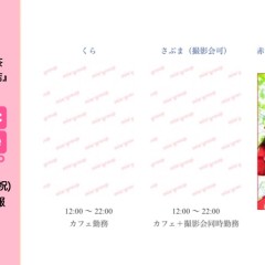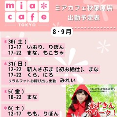 | å¶æ¥æé | âãã¢ã«ãã§æ±äº¬åºïŒã¡ã€ãã«ãã§ïŒhttp://www.mia-cafe.com/ãâ â¡å¹³æ¥ãæïœéãïŒïŒïŒïŒïŒïœïŒïŒïŒïŒïŒ â¡åæã»æ¥æã»ç¥æ¥ãïŒïŒïŒïŒïŒïœïŒïŒïŒïŒïŒ â å®äŒæ¥ããªãïŒ2019幎1æããå®äŒæ¥å»æ¢ïŒ â¡ã©ã¹ããªãŒããŒãéåºã®ïŒïŒåå ãïŒïŒïŒïŒïŒéåºã®å ŽåâïŒïŒïŒïŒïŒã©ã¹ããªãŒããŒ å¶æ¥æ¥ãåºå€ç¶æ³ã«ã€ããŠã¯ãã¡ãã http://pandaland.cutegirl.jp/mif/c_cms_csv/sch_top.php âãã¢ãªã©ïŒãã©ãæ±äº¬åºïŒæ®åœ±äŒïŒãªãã¬ïŒhttp://www.mif-lr.com/ãâ â¡å šæ¥ãïŒïŒïŒïŒïŒãïŒïŒïŒïŒïŒãã§ãããªã©ã¯ãŒãŒã·ã§ã³åºå€ã¹ã¿ãããããæé垯ã®ã¿å¶æ¥ã§ãã â å®äŒæ¥ã¯äžå®äŒïŒåºå€ã¹ã¿ãããããæé垯ã®å¶æ¥ïŒ â¡æçµåä»ãéåºã®ïŒïŒåå ãïŒïŒïŒïŒïŒéåºã®å ŽåâïŒïŒïŒïŒïŒïŒïŒïŒïŒïŒïŒè¿ã«æœè¡æéãçµããã³ãŒã¹ïŒ â»é«æ ¡çäžå¯ âæ·±å€å¶æ¥ã«ã€ããŠã¯ãå ¬åŒãµã€ãå³äžã® http://market.chu.jp/schedule1/sche37.cgi ãã¢ã°ã«ãŒãç·åã¹ã±ãžã¥ãŒã«ïŒïŒ°ïŒ£ã»ã¹ããïŒ http://market.chu.jp/schedule1/sche37.cgi?dm=1 ãã¢ã°ã«ãŒãç·åã¹ã±ãžã¥ãŒã«ïŒã¬ã©æºåž¯ïŒ ãã芧ãã ãããåç¥æ¥ã®ã¿å¶æ¥ãšãªããŸããåç¥æ¥ä»¥å€ã¯æ·±å€å¶æ¥ããããŠãããŸããã æ·±å€å¶æ¥å¯Ÿè±¡æ¥ãïŒïŒïŒïŒïŒãç¿æïŒïŒïŒïŒïŒïŒ¬ïŒïŒ¯ïŒïŒïŒïŒïŒïŒ | ||||||||||||||