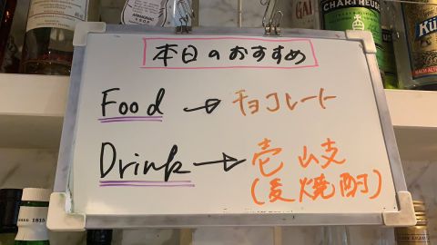 今日のおすすめはチョコレートと壱岐(麦焼酎)
