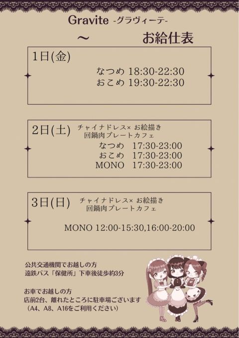 今月の残りのお給仕予定です\♡/ ご主人様、お嬢様のご帰宅お待ちしております! #グラヴィーテ #メイドカフェ #コンカフェ #静岡 #浜松 #豊橋 https://t.co/IHcrVdRHM7