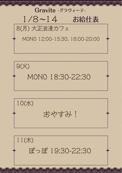 今週のお給仕予定です🌟