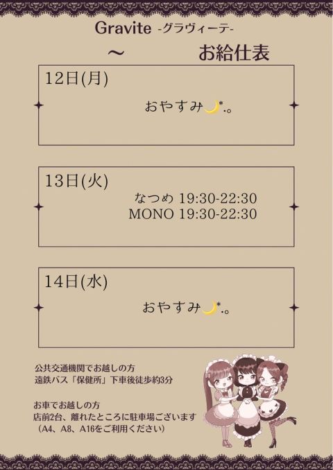 今月の残りのお給仕予定です\♡/ ご主人様、お嬢様のご帰宅お待ちしております! #グラヴィーテ #メイドカフェ #コンカフェ #静岡 #浜松 #豊橋 https://t.co/IHcrVdRHM7