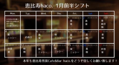 | 営業時間 | 20:00~翌5:00 ※コロナウイルスの影響で営業時間を変更しております。 2020/6/1〜 平日19:00〜25:30 土18:00〜25:30 日祝18:00〜23:30 | ||||||||||||||