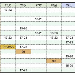 | 営業時間 | 18:00〜 | ||||||||||||||