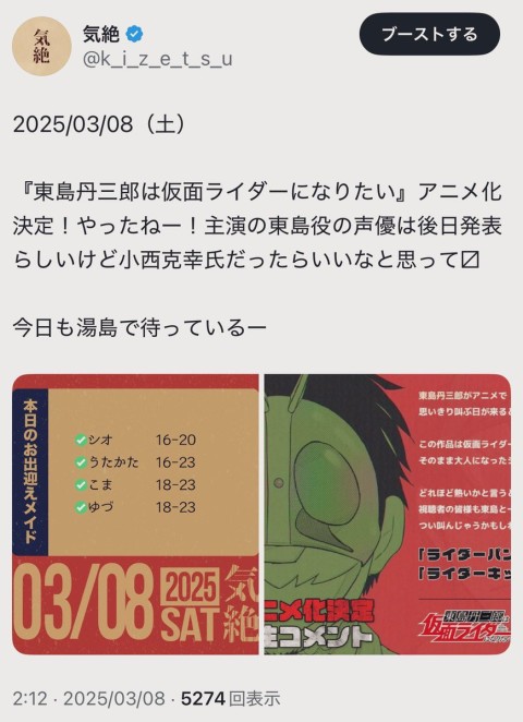 東島丹三郎役、ホントに小西克幸さんに決まったみたい…おめでとう… https://t.co/XleqLBbmDz